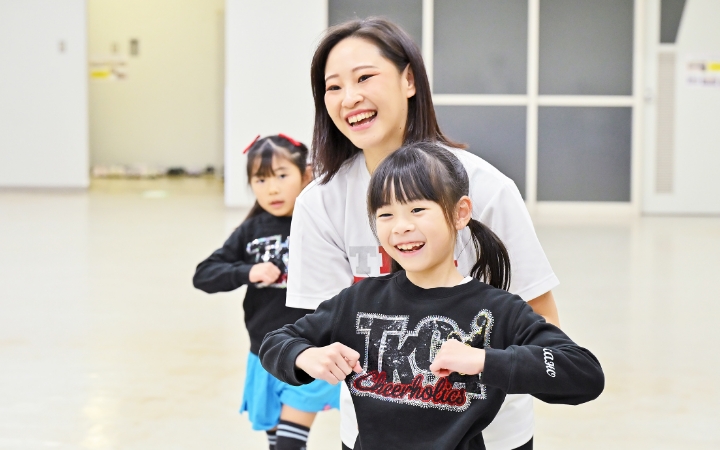 アメリカでの経験をいかした、小島とプロの講師陣が、チアの楽しさ・本場のスピリット・確かな技術を、子どもたちにやさしく、丁寧に指導します。安心して本格的なチアを学べるアカデミーです。